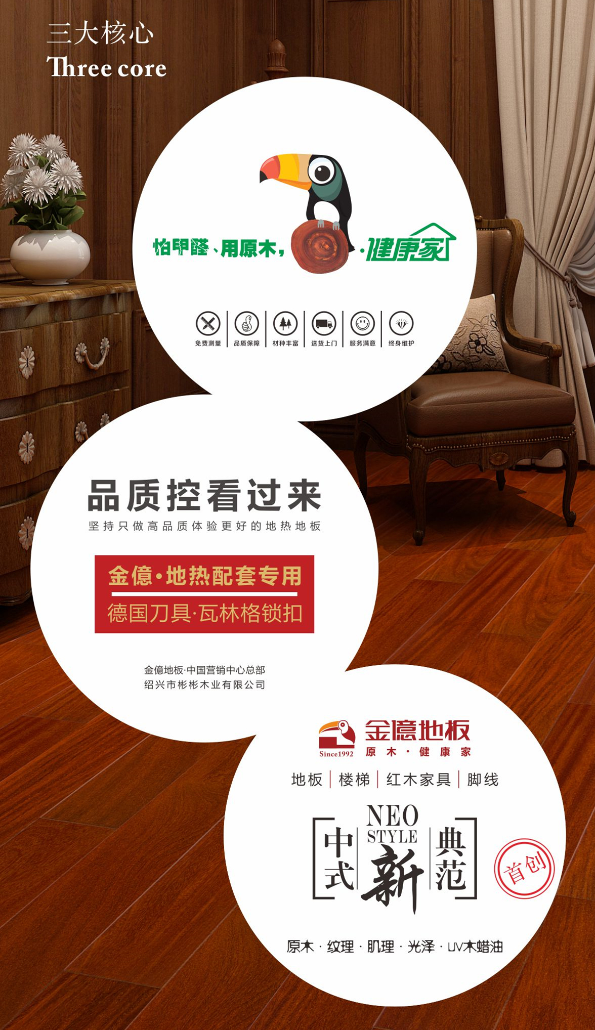 天然即原木,原木即健康,可目前地板市場(chǎng)中,膠水地板、甲醛地板泛濫,正在危害您和您的家人身體健康。金億原木地板,拒絕甲醛,原木• 天然• 健康,給家和家人,一個(gè)放心的選擇!